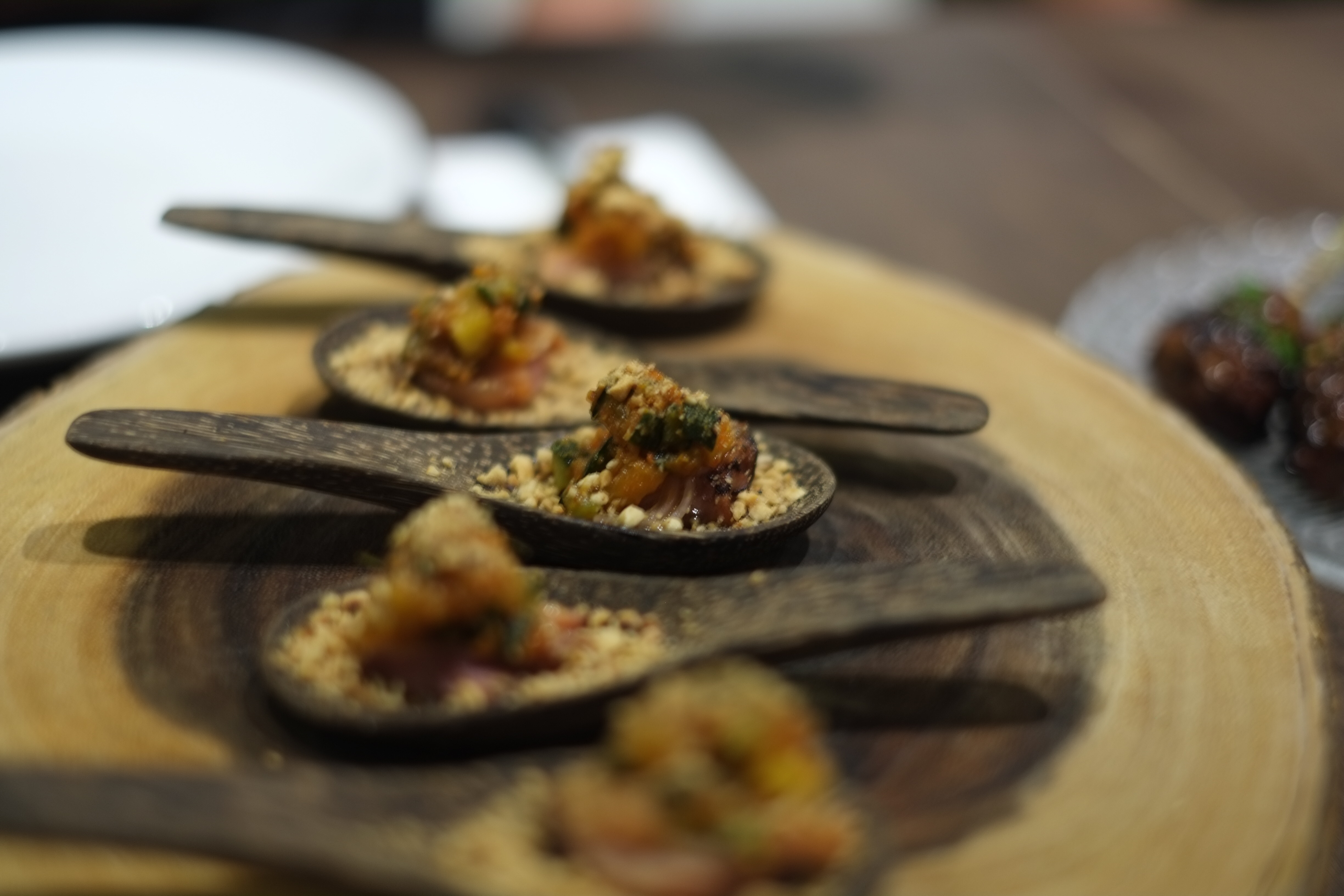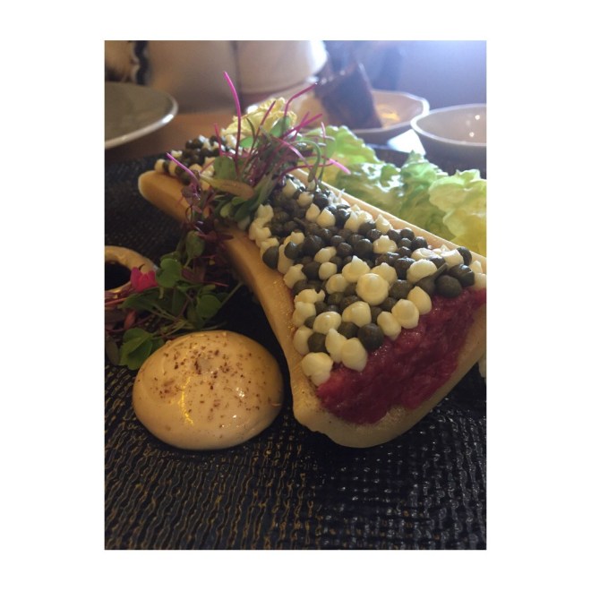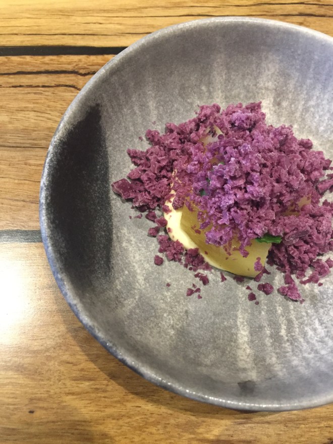 This was followed by Smoked venison tartare dressed in Kachin salsa and served with sweet potato chips. MMMM! After the first bite, you are pulled in by the bright and spicy flavours, with the heat building and lingering. You won’t want to stop, you’ll want to carry on until there’s nothing left. Venison and tartare are almost never in the same description on a menu. I applaud Chef Le for this dish. The dish is one of many that bridges Asia and Europe together. Bridges, not fuses.