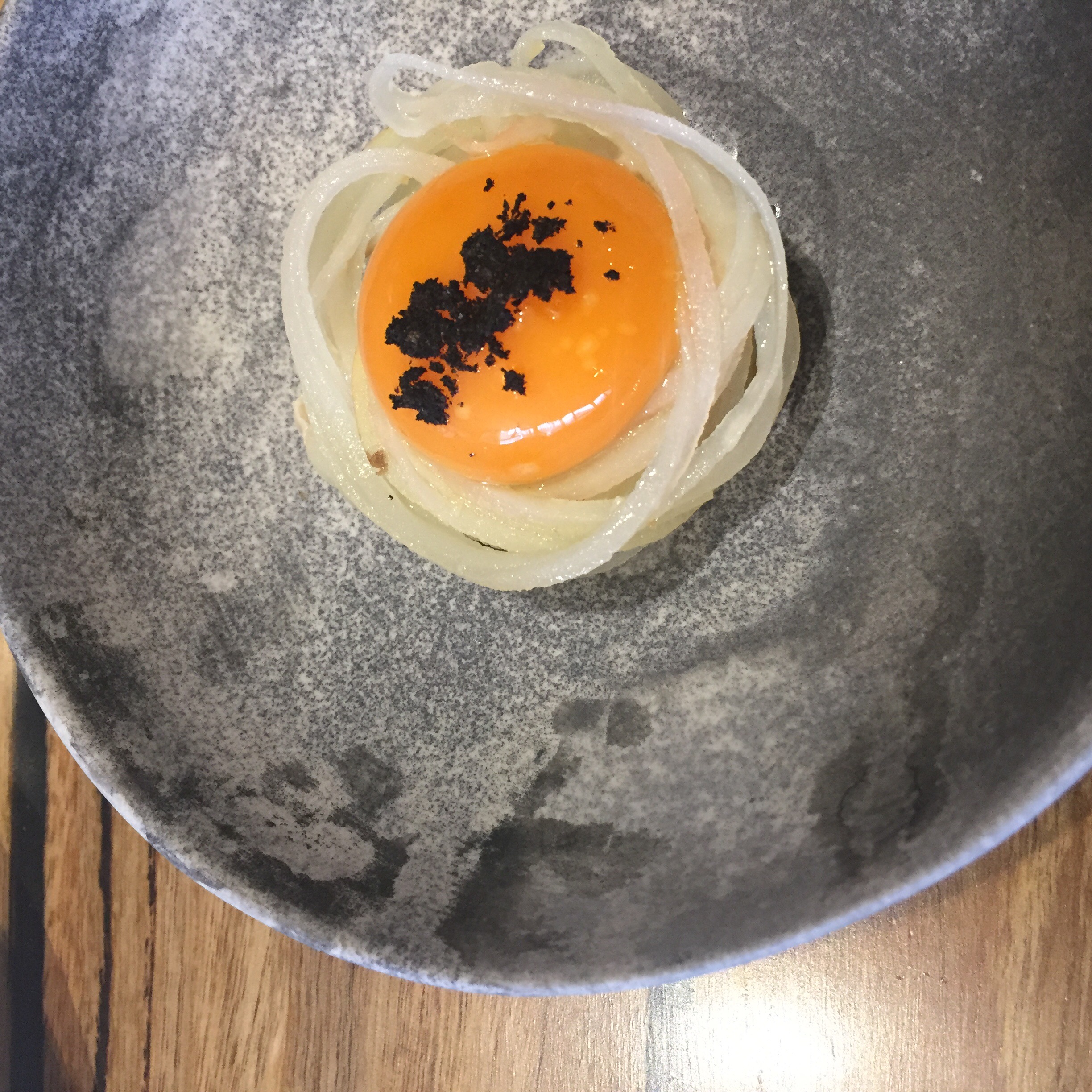 Having just flown in on a red eye flight and catching up with some friends for brunch, and a long power nap later, I reached Anchovy after 8.30pm. The place was 3/4 full with one service staff who immediately smiled and acknowledged my presence. “table for one, no reservation. will that be fine?” “Of course!” Within 3 mins, a counter space had been cleared and a fresh table setting laid out, water served and I found hooks to hang my coat and things. Service never dropped all night. It was solid from start to finish.