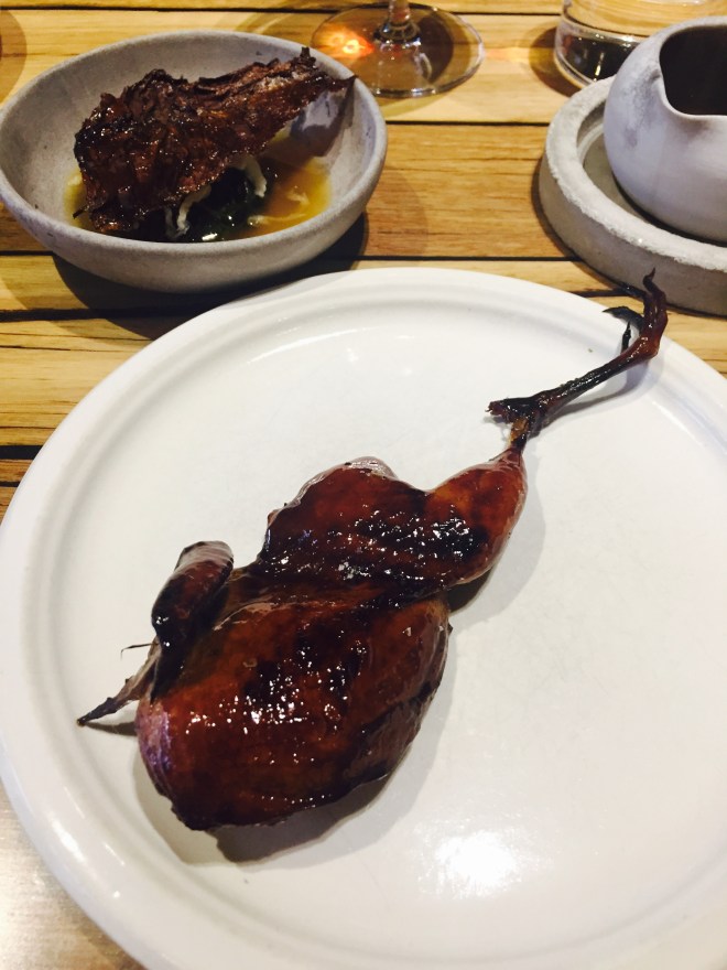 The next dish, Chicory and Mam nem was a perfect example of bridging two cultures together. In Rome, there’s a dish known as Puntarelle ala Romana. its a fibrous and pointy tipped vegetable that’s a member of the chicory family. In Rome, this dish is served with an anchovy dressing. In Anchovy, chicory is tossed with a vinaigrette made from Vietnamese fermented anchovy sauce. This anchovy sauce is less filtered which adds more pungency and texture versus the normal fish sauce we’re accustomed to. This dish was intense, spicy, tangy, pungent and a pure joy to eat.