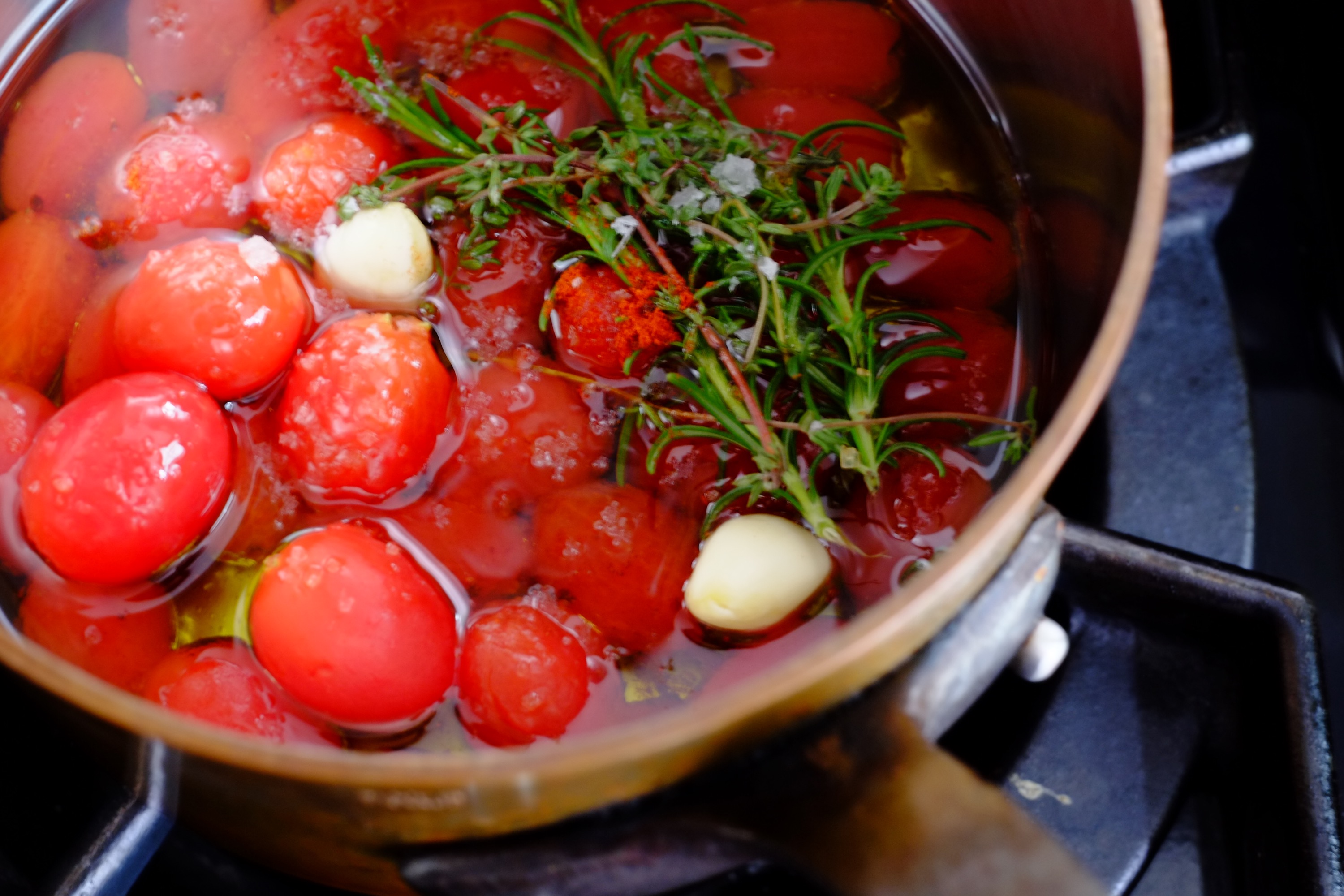 We balanced off the meal with braised mustard greens in conpoy stock.