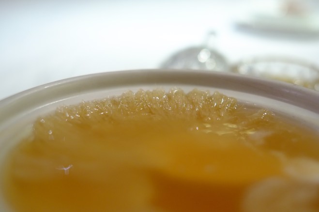 There were two versions, one with a braised pomelo skin and the other – the classic pairing of goose web and abalone. Truly sensational.