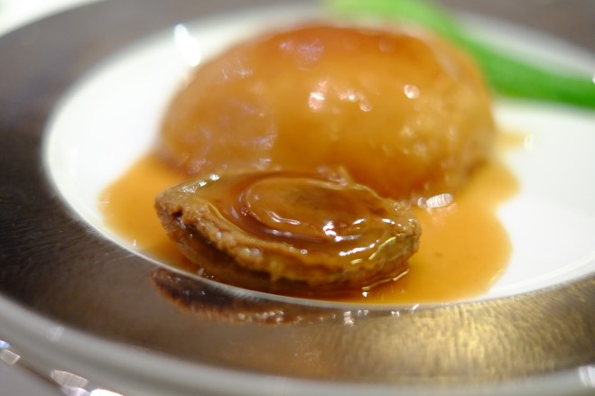 How does one top this? Why, serve Japanese abalone braised in an equaling beguiling broth of course!