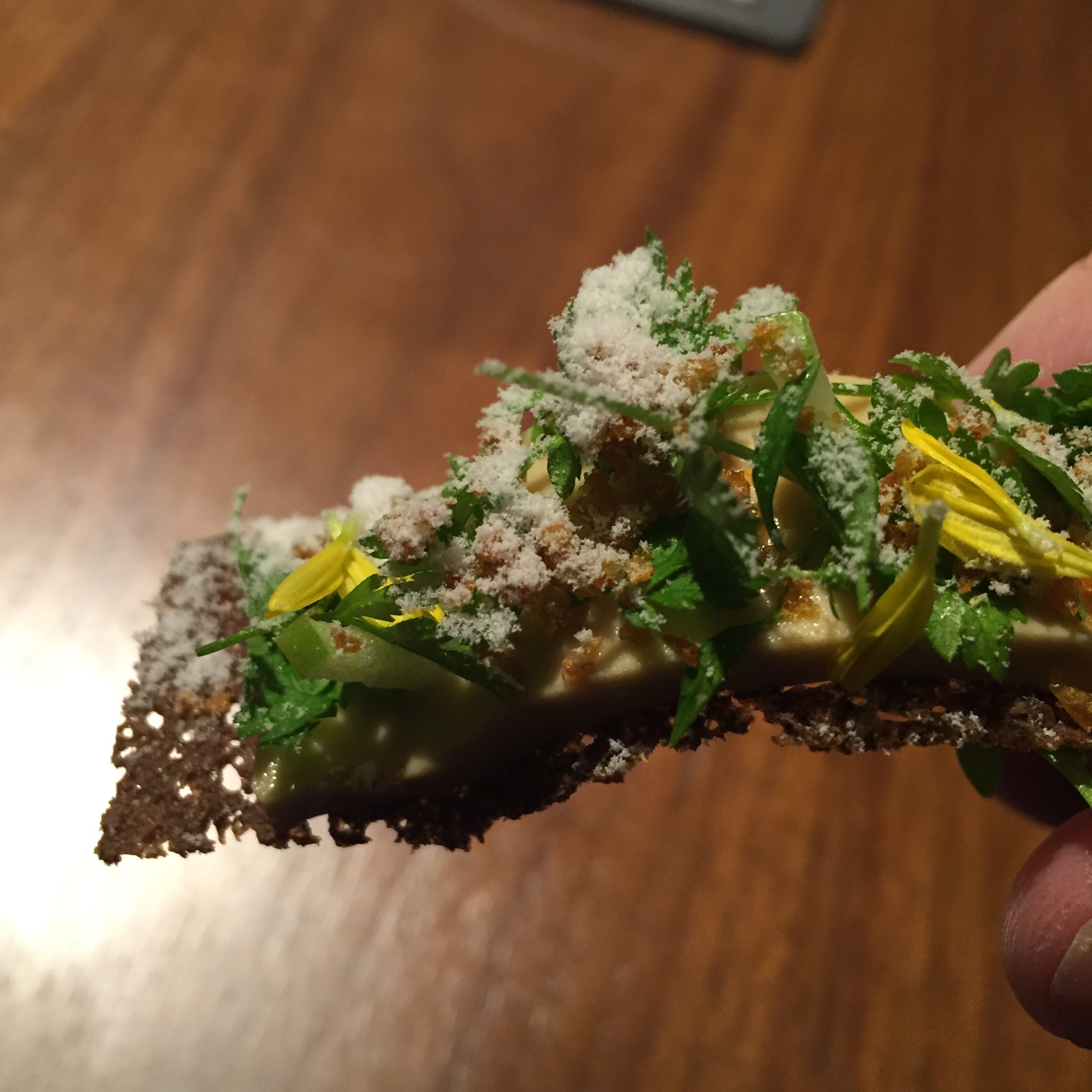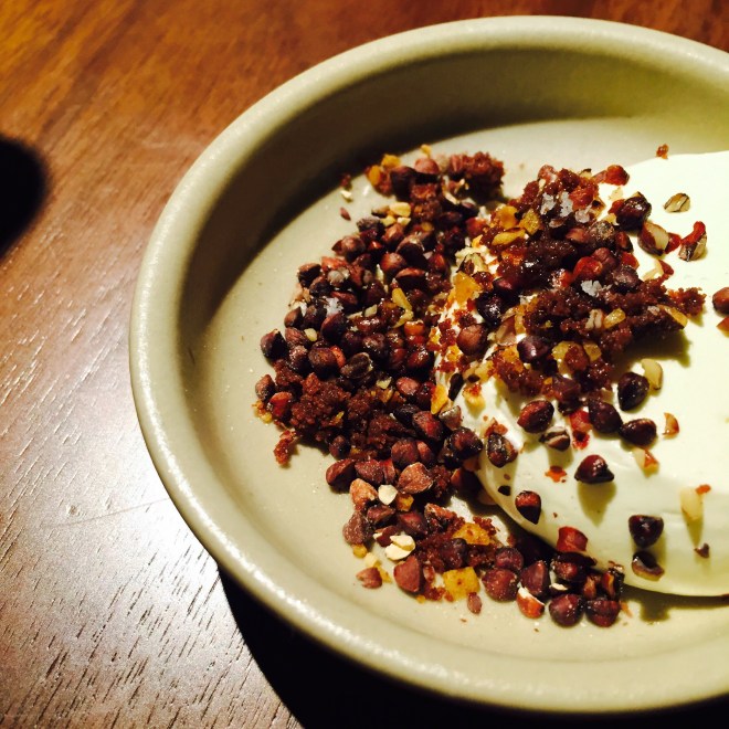 Our server did warn us not to eat too much bread, which we didn’t heed. It was delicious with an amazing crust and hints of sourdough in it. The bread was accompanied by whipped butter dusted with sea salt and cocoa nibs ( amazing combination!)