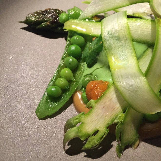 The marinated kampachi with daikon was surprisingly savoury and earthy. While the peas/asparagus/Uni/peanut butter highlighted Taiwanese produce at its best. Peanut butter and pea ice cream with Uni? All worked exceptionally well but the Uni was lost in the translation.